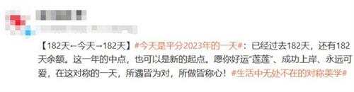 今天,我們迎來了2023年的中點,這一天既是對稱的,也是新的起點。過去的182天已經成為過去,而剩下的182天則展現了未來的可能性。在這個特殊的日子里,讓我們一起祝愿自己好運連連,成功順利。
