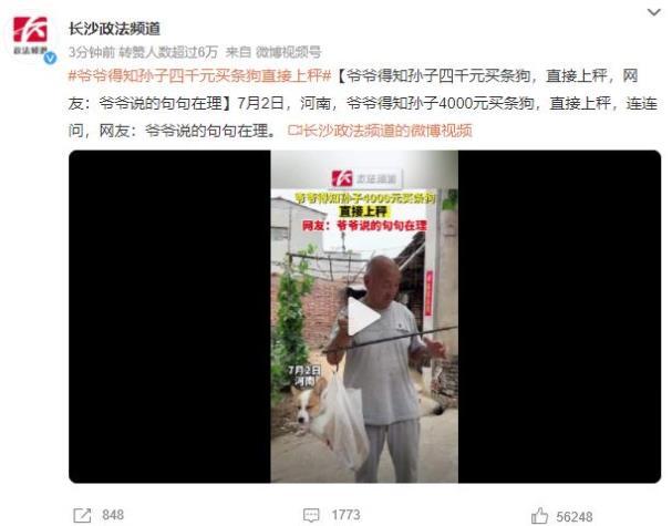 7月2日,河南發(fā)生了一則引人注目的故事。爺爺?shù)弥獙O子花了4000元買了一條狗,他不由得將狗放上秤,同時(shí)詢問(wèn)孫子多個(gè)問(wèn)題。網(wǎng)友紛紛表示贊同,稱爺爺說(shuō)的每句話都是有道理的。