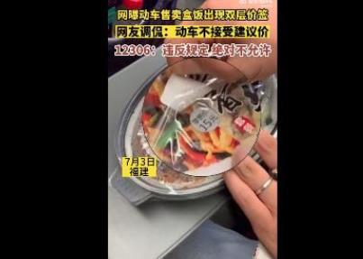 7月3日,一位網(wǎng)友在社交媒體上發(fā)布了一段視頻,稱他在動(dòng)車上購(gòu)買的盒飯出現(xiàn)了雙層價(jià)簽的情況。