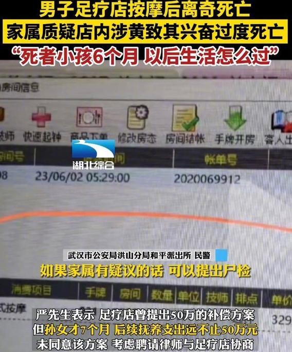 根據(jù)這則消息,我們可以了解到湖北武漢發(fā)生了一起令人不寒而栗的事件。一名29歲男子在足療店內(nèi)按摩后離奇死亡。男子的父親對此表示懷疑,認(rèn)為兒子的死可能與足療店涉黃有關(guān),是興奮過度導(dǎo)致的。