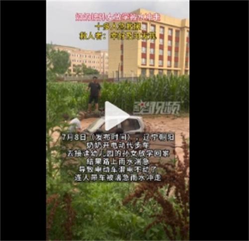 7月8日,在遼寧朝陽,發生了一起令人心驚膽戰的事件。一位奶奶開著電動代步車去接她在幼兒園讀書的孫女放學回家。然而,路上突降的大雨導致水流湍急,結果電動車在水中熄火,奶奶和孫女連人帶車被雨水沖走。幸運的是,附近的村民發現了這一情況,迅速展開了救援行動,一共有十多位村民參與其中,最終成功將奶奶和孫女都救上岸。參與救援的冷先生表示,如果沒有及時的營救行動,后果不堪設想,這是一次非常危險的事故。