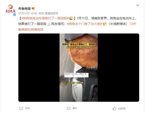 事情發(fā)生在7月11日,當天湖南張家界天氣炎熱,一位主人帶著狗狗外出。由于路途較遠,主人選擇騎電動車代步,并讓狗狗坐在車上。然而,沒想到在行駛過程中,主人突然對狗狗的屁股進行了幾下輕輕的拍打。這個意外的舉動引起了路人的注意,紛紛感到驚訝和好笑。