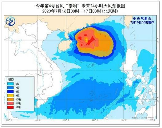 預計,臺風泰利將以每小時15公里左右的速度向西北方向移動,強度逐漸增強。預計17日夜間,臺風將在廣東臺山到海南文昌一帶沿海登陸,登陸時臺風級或強臺風級,風力在35-42米/秒之間,級數為12-14級。之后,臺風將進入北部灣,并趨向越南北部沿海和廣西沿海。