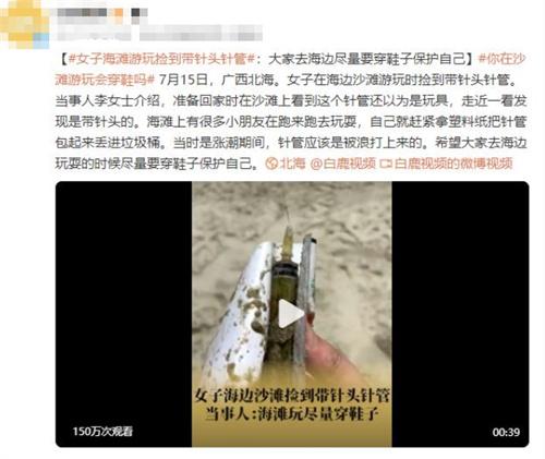 7月15日,廣西北海的海灘上發(fā)生了一起令人擔(dān)憂的事件。一名女子在海邊游玩時意外撿到一個帶有針頭的針管。這一事件引發(fā)了公眾對海灘安全問題的關(guān)注。當(dāng)事人李女士表示,她在海灘上發(fā)現(xiàn)這個針管時還以為是玩具,但仔細(xì)一看才發(fā)現(xiàn)其中藏有針頭,這讓她非常擔(dān)憂。在海灘上有很多小朋友在玩耍,為了保護(hù)大家的安全,她迅速將針管用塑料紙包起來丟進(jìn)垃圾桶。據(jù)推測,針管可能是被漲潮的海浪沖上來的。