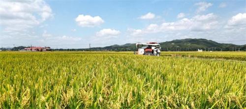 7月的福建龍巖市長汀縣河田鎮,遠豐優質稻生產基地正迎來了豐收季節。一片片金黃的稻田,飽滿的稻穗,農戶們正在利用機械化收割技術,順利地收割著成熟的水稻。一次性完成稻谷脫粒和秸稈粉碎,將豐收的喜悅帶給了農民。