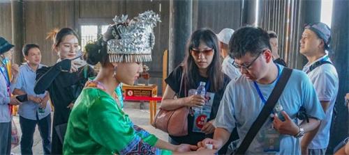 在桂林東西巷和靖江王府參觀歷史古建筑時,臺灣青年們深深被桂林古城的文化底蘊所吸引。乘坐游船順漓江而下,欣賞“桂林山水甲天下”之美,讓他們感受到壯鄉(xiāng)山水的獨特之處。觀看大型山水實景演出《印象·劉三姐》,臺灣青年們被壯族山歌和舞蹈的表演形式所震撼,對于壯族民族文化有了更深的了解。