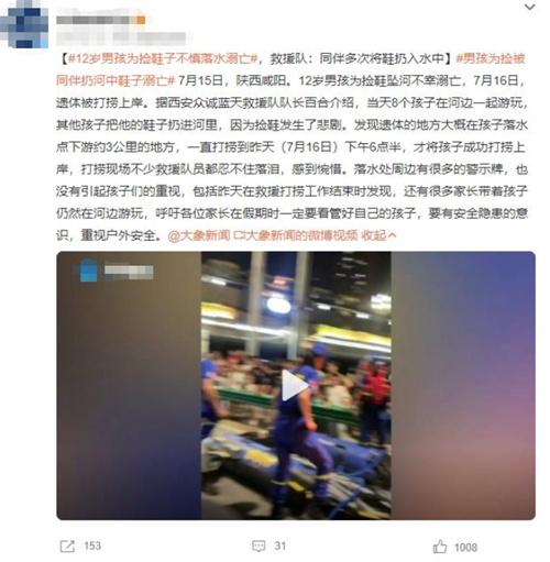夏日的咸陽,陽光明媚,天氣炎熱,成群的孩子們在河邊游戲嬉戲。然而,這樣的歡樂游戲也蘊藏著不容忽視的危險。7月15日,一起悲劇在陜西咸陽發生:一名年僅12歲的男孩因為撿鞋墜河不幸溺亡,整個社區為之哀悼。