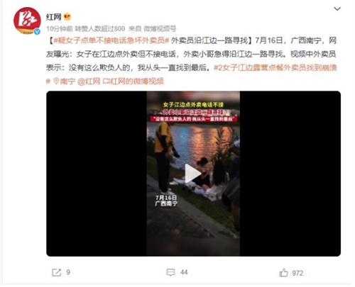 7月16日,廣西南寧的一場出奇不意的外賣故事引起了網(wǎng)友的關(guān)注。一名外賣員在沿江邊送餐時,遇到了一位疑似點單但不接電話的女子,讓他急壞了。