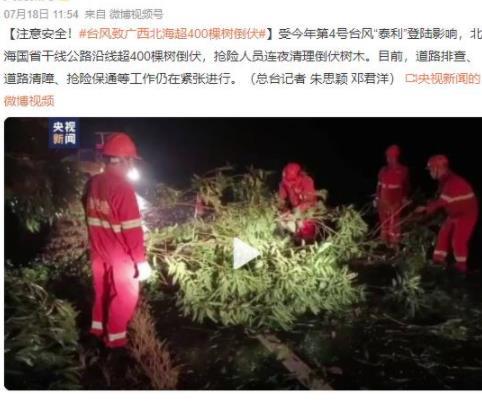 【臺風(fēng)泰利】廣西北海超400棵樹倒伏,搶險人員緊急清理