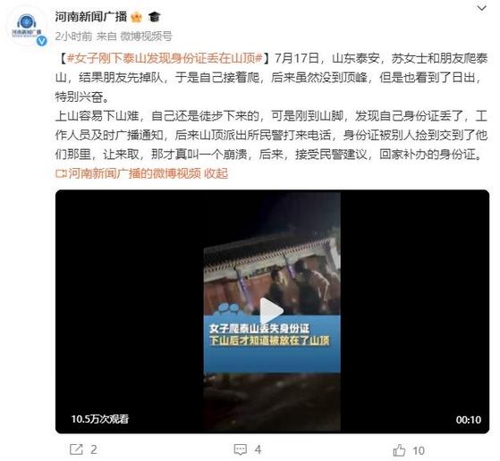 爬山容易下山難,蘇女士選擇徒步下山,然而在山腳發(fā)現(xiàn)自己的身份證不見了。她立即向工作人員報(bào)告,并迅速進(jìn)行廣播通知。幸運(yùn)的是,山頂派出所民警聯(lián)系她并告知身份證被別人撿到,已經(jīng)交到派出所。雖然蘇女士有些崩潰,但她遵從民警建議,回家補(bǔ)辦了新的身份證。這個(gè)登山經(jīng)歷成為了她難忘的回憶。