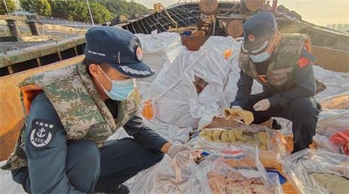 經過仔細查驗,發現該船上共裝載了牛肚、牛筋、雞爪等凍品約80噸。由于該船沒有設置冷鏈裝置,貨物現場散發著濃烈的腐臭氣味,而且未能提供合法來源手續和相關檢驗檢疫證明,因此涉嫌走私。目前,福州海警局已依法對該船舶及貨物進行扣押,案件正在進一步偵辦中。