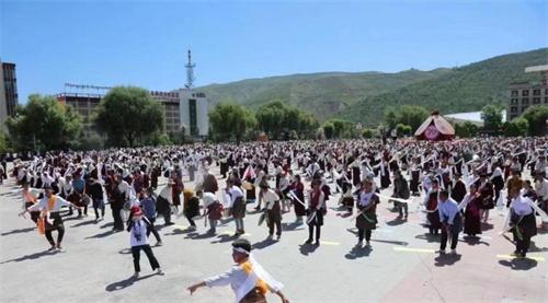 首先,“最大規(guī)模的龍鼓舞”成為了同仁市引以為豪的一項(xiàng)成就。該項(xiàng)目著眼于規(guī)模之最、人數(shù)之最和舞種之最這“三最”目標(biāo)。通過提煉國家級非物質(zhì)文化遺產(chǎn)名錄項(xiàng)目“六月會”的軍舞、神舞和龍舞元素,組織了本地的11111名舞者,他們整齊地排列成一個巨大的圓形隊(duì)伍,形成了壯觀的舞蹈表演。