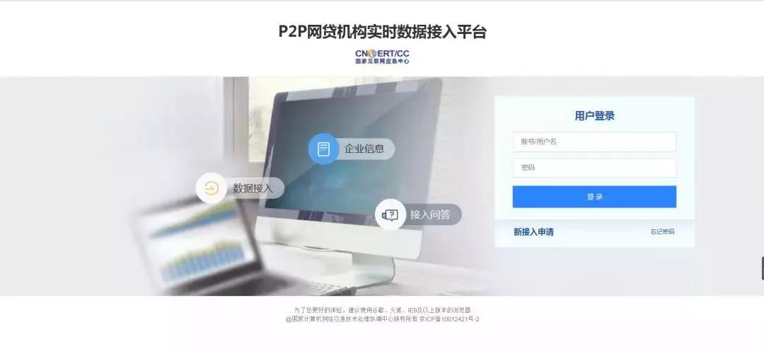 2018年10月,由國家計算機網絡應急技術處理協調中心開發的國家互聯網金融風險分析技術平臺P2P網貸機構數據報送系統正式上線。該平臺是迄今國家唯一批復的互聯網金融監管支撐技術平臺,由國家互聯網應急中心負責建設和運營。