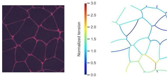 加州大學圣地亞哥分校機械工程教授Padmini Rangamani,博士。Ritvik Vasan的學生和第一作者Ritvik Vasan及其合作者Allen Institute的Dave Williams和Molly Maleckar開發(fā)了這種新方法。他們的計算方法分析了從細胞菌落的視頻中獲取的顯微鏡圖像,使用視頻中先前幀中的信息來告知后續(xù)幀中的估計,然后計算出細胞間的力。該方法將來自第一性原理的生物物理建模(形狀-拉伸關(guān)系的楊氏拉普拉斯定律)與使用顯微鏡電影中的細胞形狀進行數(shù)據(jù)驅(qū)動的建模相結(jié)合。