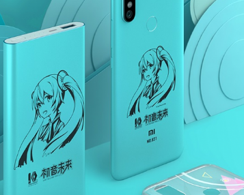 Mi 6X的初音未來版將限量發售5,000臺。除手機外,盒子還包括一個10,000mAh的綠松石移動電源,上面刻有初音未來的圖案,彩色的初音未來印在一個半透明的外殼上,以及一張禮品卡。