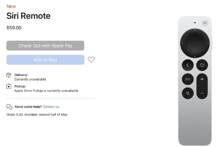 盡管第二代Siri Remote于周二與新的Apple TV 4K一同宣布,但它與Apple機頂盒的先前型號兼容,可以以59美元的價格從Apple購買。