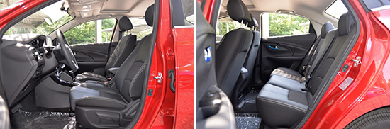 座椅材質方面,根據配置差異第三代長安悅翔提供了織物與PVC仿皮兩種不同面料,兩款入門的舒適型使用了織物座椅,豪華型與尊貴型則全部使用了PVC仿皮,中高配悅翔車內檔次因此顯高,也符合了國人的喜好。座椅功能表現不是很給力,高配車型主駕駛座椅依舊是手動調節,低配車型座椅甚至都未提供高度位置調節。身高172cm的體驗者坐進駕駛位并調整至最低,頭部有四指的縱向距離,一般身高的駕駛者或前排乘客不會感覺頂頭。前排位置保持不變,當體驗者坐到后排,此時頭部空間有三指,腿部空間足足兩拳。如果坐姿能略微往下“出溜”,頭部空間不僅變好,腿部空間也依然能夠得到保障。