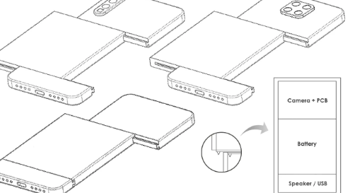 Concept Creator已為LetsGoDigital創(chuàng)建了基于專利申請中圖像的智能手機(jī)概念渲染。基本上有三個模塊-第一個模塊包含主板和攝像頭系統(tǒng),第二個模塊用于電池,而第三個模塊則構(gòu)成電話機(jī)的底部。