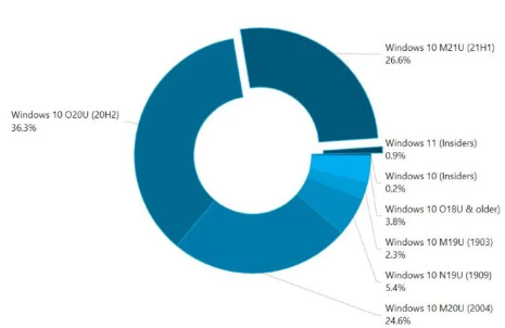 目前,在 AdDuplex 調查的 0.9% 的 PC 上運行最新的 Windows 操作系統版本。該報告還補充說,仍有 0.2% 的系統運行 Windows 10 操作系統的 Insider 版本,這可能是 21H2 版本。由于 21H2 版本的可用性非常有限,因此該數字非常小。進入此版本的唯一方法是因為不滿足 Windows 11 系統要求而退出 Beta 頻道。這意味著,您甚至無法選擇獲取此版本。