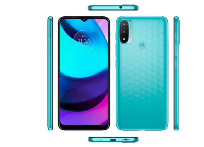 Moto E20 的新渲染顯示它有一個淚滴形凹口顯示屏,并且在似乎是聚碳酸酯的背面上有一個六邊形圖案。E20 的背面安裝了一個垂直雙攝像頭單元。設備的右邊緣似乎有一個語音助手按鈕、一個音量搖桿和一個電源鍵。