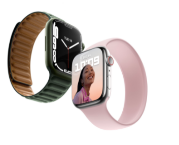 全新 Watch Series 7 于 2021 年 9 月首次推出,將在中國推出五種新顏色,包括星光、午夜、藍色、綠色和紅色,以及許多新的表帶顏色和表盤。它還提供始終顯示、加速度計、陀螺儀、心率(第 3 代)、氣壓計、始終顯示高度計、指南針、SpO2 和 VO2max 等功能。它采用玻璃正面、陶瓷/藍寶石水晶背面和鋁制框架制成。
