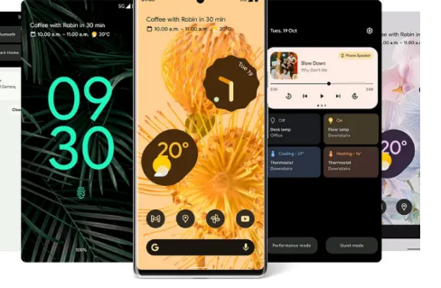 接下來,我們有新的 Pixel Stand 和 Pixel Security 應用程序,它們將所有現有的安全功能結合在一個地方(這里沒有什么新東西)。在 Pixel Stand 的渲染圖中,我們可以看到帶有媒體播放和智能家居控制功能的Pixel Stand 充電用戶界面。乍一看,它似乎比Google Assistant 環(huán)境模式更有用。您還可以選擇在 Performance 和 Quiet 模式之間切換,大概是為了控制 Stand 的風扇速度。