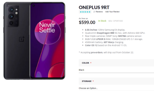 感興趣的人可以前往 Giztop 獲得額外的 5% 折扣,有效期至 10 月 20 日。它有黑色和銀色兩種顏色可供選擇。OnePlus 9RT 零售店提供 8GB + 128GB、8GB + 256GB 和 12GB + 256GB 三種不同的存儲版本。