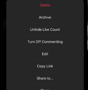 導航到要編輯的照片輪播后,點擊右上角個人資料名稱旁邊的三個點。這將為您提供幾個選項:從“刪除”到“存檔”再到“共享”。單擊“編輯”。