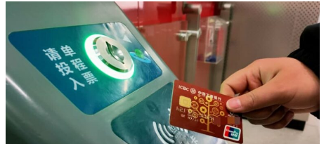 卡號以62開頭的銀聯卡,卡正面有云閃付標識,可使用少量免密碼服務口進入閘機感應區。大門打開后就可以進出。