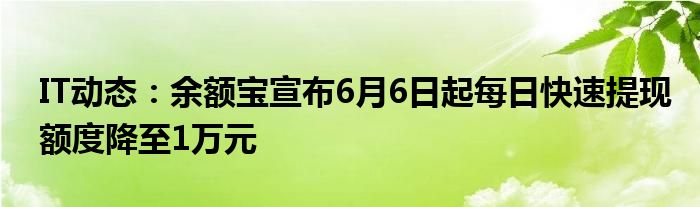 5G已經片區使用,很多小伙伴對通信這塊還不熟系!越來越多的人開始對IT、5G信息方面產生興趣,近來余額寶宣布6月6日起每日快速提現額度降至1萬元的話題也是引起了很多人的關注,那么既然現在大家都想要知道余額寶宣布6月6日起每日快速提現額度降至1萬元,小編今天就來給大家針對余額寶宣布6月6日起每日快速提現額度降至1萬元做個詳細介紹。