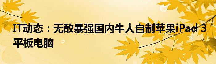 5G已經片區使用,很多小伙伴對通信這塊還不熟系!越來越多的人開始對IT、5G信息方面產生興趣,近來無敵暴強國內牛人自制蘋果iPad 3平板電腦的話題也是引起了很多人的關注,那么既然現在大家都想要知道無敵暴強國內牛人自制蘋果iPad 3平板電腦,小編今天就來給大家針對無敵暴強國內牛人自制蘋果iPad 3平板電腦做個詳細介紹。