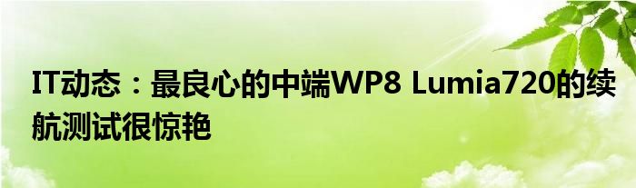 GSM Arena就Lumia720的電池續航能力進行一次測評,結果證明Lumia720續航能力絕對值得稱贊。可見將Lumia720成為最佳的中端WP8絕不為過,因為它還有著十分優異的攝像頭呢。(詳見:《非要把手機當相機做?諾基亞談Lumia720攝像頭》)