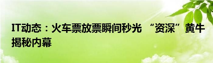 5G已經片區使用,很多小伙伴對通信這塊還不熟系!越來越多的人開始對IT、5G信息方面產生興趣,近來火車票放票瞬間秒光 “資深”黃牛揭秘內幕的話題也是引起了很多人的關注,那么既然現在大家都想要知道火車票放票瞬間秒光 “資深”黃牛揭秘內幕,小編今天就來給大家針對火車票放票瞬間秒光 “資深”黃牛揭秘內幕做個詳細介紹。