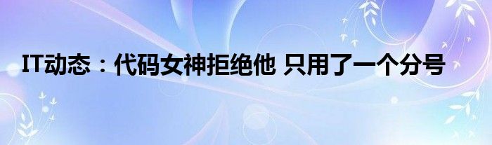 5G已經片區使用,很多小伙伴對通信這塊還不熟系!越來越多的人開始對IT、5G信息方面產生興趣,近來代碼女神拒絕他 只用了一個分號的話題也是引起了很多人的關注,那么既然現在大家都想要知道代碼女神拒絕他 只用了一個分號,小編今天就來給大家針對代碼女神拒絕他 只用了一個分號做個詳細介紹。