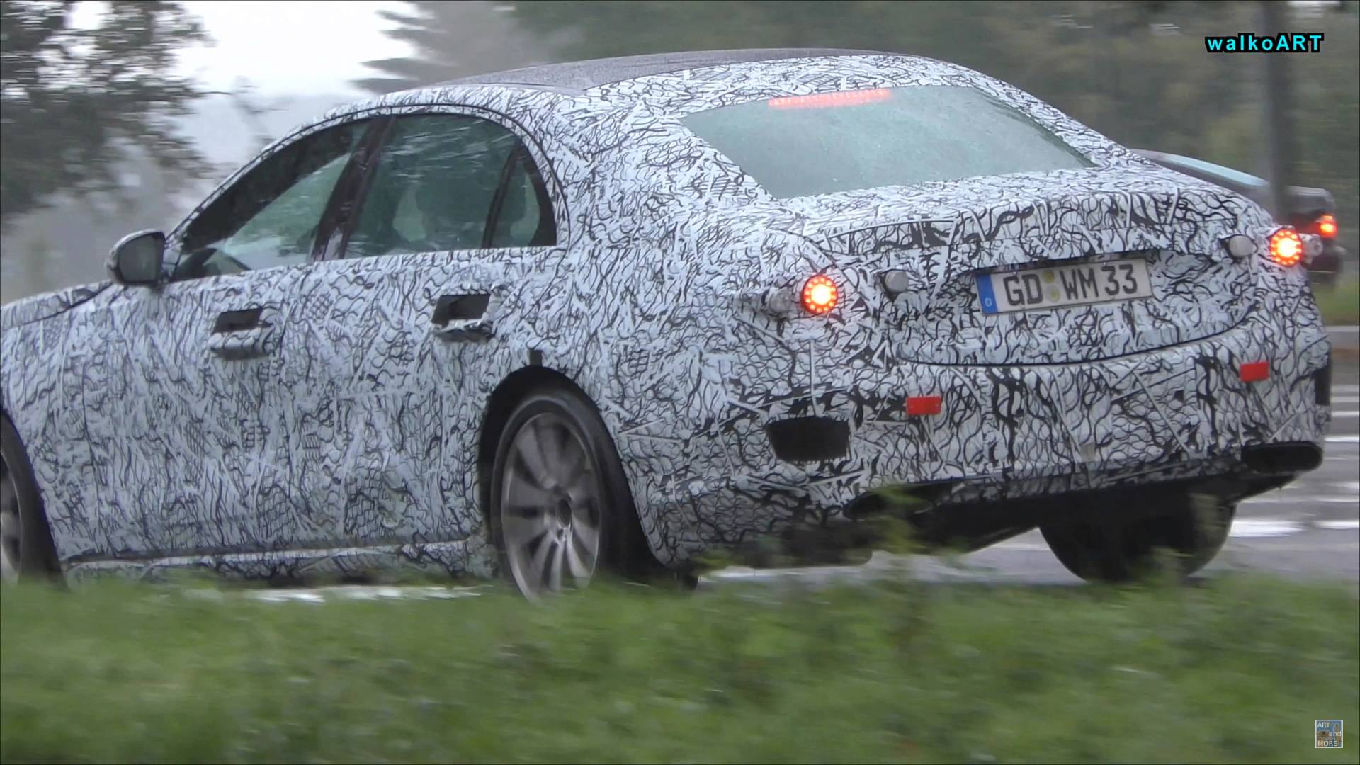 值得一提的是,新車側邊的門把手處浮現了矩形突起,猜測為奔馳正在進行電動伸縮門把手測試。后部存在部分未遮蓋區域,或與自動駕駛系統的測試相關。