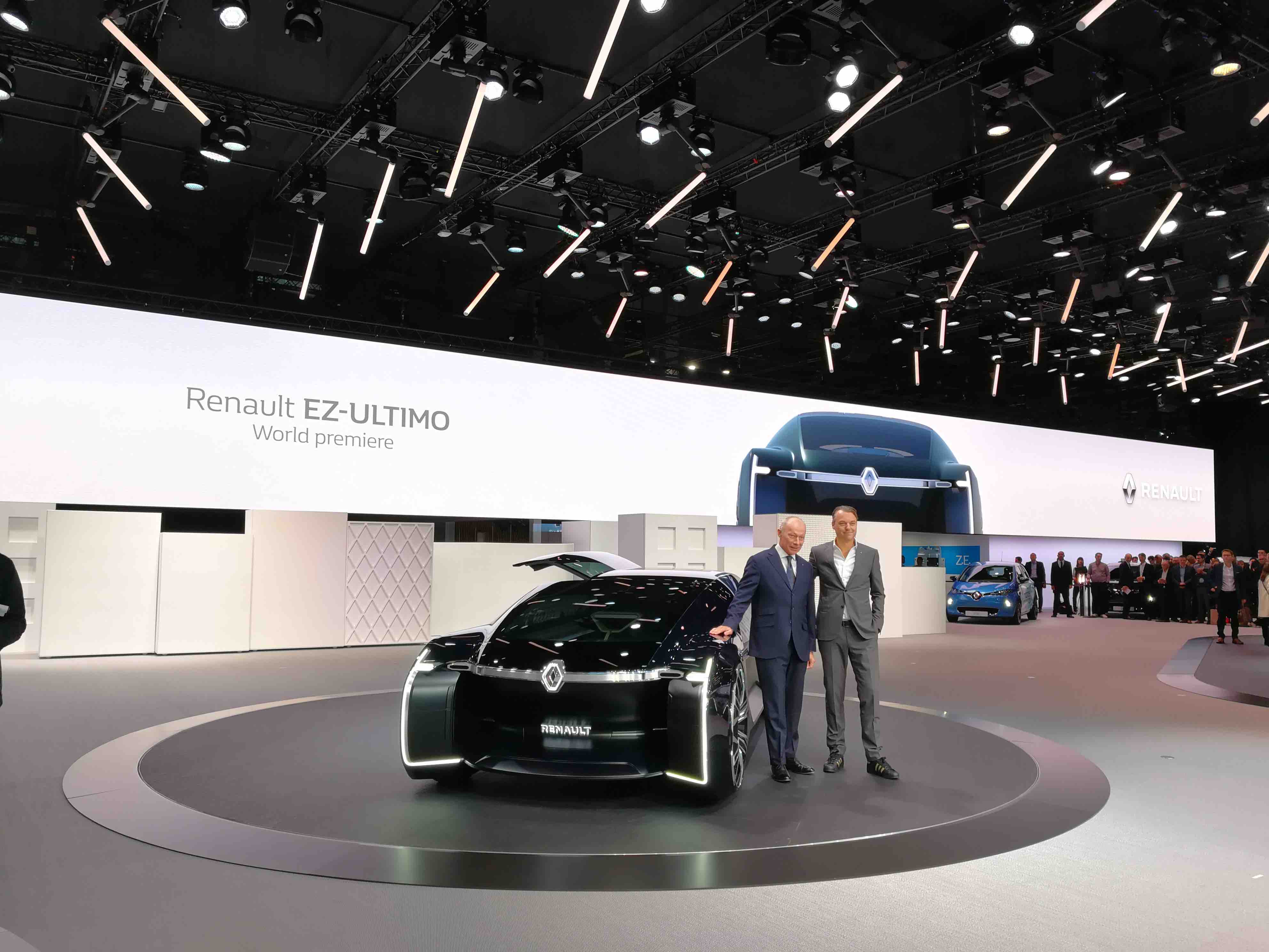10月2日,在第88屆巴黎國際車展上,雷諾集團首席運營官蒂埃里·波洛雷(Thierry Bollore)代表雷諾集團發表致辭,并公布了雷諾全新概念車EZ-ULTIMO,宣布雷諾在無人駕駛和共享出行方面的規劃。