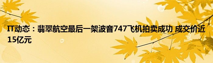 5G已經(jīng)片區(qū)使用,很多小伙伴對通信這塊還不熟系!越來越多的人開始對IT、5G信息方面產(chǎn)生興趣,近來翡翠航空最后一架波音747飛機(jī)拍賣成功 成交價(jià)近15億元的話題也是引起了很多人的關(guān)注,那么既然現(xiàn)在大家都想要知道翡翠航空最后一架波音747飛機(jī)拍賣成功 成交價(jià)近15億元,小編今天就來給大家針對翡翠航空最后一架波音747飛機(jī)拍賣成功 成交價(jià)近15億元做個(gè)詳細(xì)介紹。