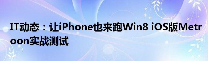 5G已經片區使用,很多小伙伴對通信這塊還不熟系!越來越多的人開始對IT、5G信息方面產生興趣,近來讓iPhone也來跑Win8 iOS版Metroon實戰測試的話題也是引起了很多人的關注,那么既然現在大家都想要知道讓iPhone也來跑Win8 iOS版Metroon實戰測試,小編今天就來給大家針對讓iPhone也來跑Win8 iOS版Metroon實戰測試做個詳細介紹。