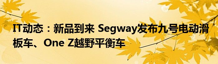 5G已經片區使用,很多小伙伴對通信這塊還不熟系!越來越多的人開始對IT、5G信息方面產生興趣,近來新品到來 Segway發布九號電動滑板車、One Z越野平衡車的話題也是引起了很多人的關注,那么既然現在大家都想要知道新品到來 Segway發布九號電動滑板車、One Z越野平衡車,小編今天就來給大家針對新品到來 Segway發布九號電動滑板車、One Z越野平衡車做個詳細介紹。