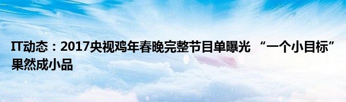 IT動(dòng)態(tài):2017央視雞年春晚完整節(jié)目單曝光 “一個(gè)小目標(biāo)”果然成小品