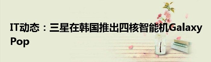 5G已經片區使用,很多小伙伴對通信這塊還不熟系!越來越多的人開始對IT、5G信息方面產生興趣,近來三星在韓國推出四核智能機Galaxy Pop的話題也是引起了很多人的關注,那么既然現在大家都想要知道三星在韓國推出四核智能機Galaxy Pop,小編今天就來給大家針對三星在韓國推出四核智能機Galaxy Pop做個詳細介紹。