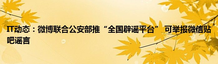 5G已經片區使用,很多小伙伴對通信這塊還不熟系!越來越多的人開始對IT、5G信息方面產生興趣,近來微博聯合公安部推“全國辟謠平臺” 可舉報微信貼吧謠言的話題也是引起了很多人的關注,那么既然現在大家都想要知道微博聯合公安部推“全國辟謠平臺” 可舉報微信貼吧謠言,小編今天就來給大家針對微博聯合公安部推“全國辟謠平臺” 可舉報微信貼吧謠言做個詳細介紹。