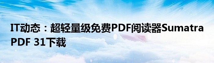 5G已經片區使用,很多小伙伴對通信這塊還不熟系!越來越多的人開始對IT、5G信息方面產生興趣,近來超輕量級免費PDF閱讀器Sumatra PDF 31下載的話題也是引起了很多人的關注,那么既然現在大家都想要知道超輕量級免費PDF閱讀器Sumatra PDF 31下載,小編今天就來給大家針對超輕量級免費PDF閱讀器Sumatra PDF 31下載做個詳細介紹。