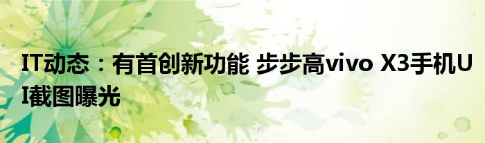 5G已經片區使用,很多小伙伴對通信這塊還不熟系!越來越多的人開始對IT、5G信息方面產生興趣,近來有首創新功能 步步高vivo X3手機UI截圖曝光的話題也是引起了很多人的關注,那么既然現在大家都想要知道有首創新功能 步步高vivo X3手機UI截圖曝光,小編今天就來給大家針對有首創新功能 步步高vivo X3手機UI截圖曝光做個詳細介紹。
