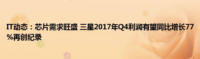 5G已經片區使用,很多小伙伴對通信這塊還不熟系!越來越多的人開始對IT、5G信息方面產生興趣,近來芯片需求旺盛 三星2017年Q4利潤有望同比增長77%再創紀錄的話題也是引起了很多人的關注,那么既然現在大家都想要知道芯片需求旺盛 三星2017年Q4利潤有望同比增長77%再創紀錄,小編今天就來給大家針對芯片需求旺盛 三星2017年Q4利潤有望同比增長77%再創紀錄做個詳細介紹。
