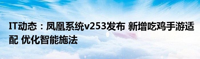 IT動(dòng)態(tài):鳳凰系統(tǒng)v253發(fā)布 新增吃雞手游適配 優(yōu)化智能施法
