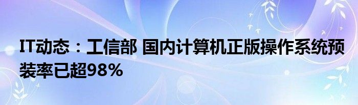 5G已經(jīng)片區(qū)使用,很多小伙伴對通信這塊還不熟系!越來越多的人開始對IT、5G信息方面產(chǎn)生興趣,近來工信部 國內(nèi)計算機正版操作系統(tǒng)預(yù)裝率已超98%的話題也是引起了很多人的關(guān)注,那么既然現(xiàn)在大家都想要知道工信部 國內(nèi)計算機正版操作系統(tǒng)預(yù)裝率已超98%,小編今天就來給大家針對工信部 國內(nèi)計算機正版操作系統(tǒng)預(yù)裝率已超98%做個詳細介紹。