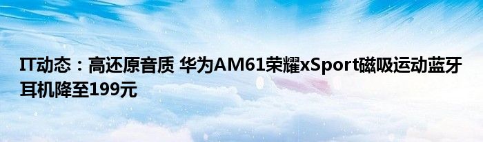 5G已經片區使用,很多小伙伴對通信這塊還不熟系!越來越多的人開始對IT、5G信息方面產生興趣,近來高還原音質 華為AM61榮耀xSport磁吸運動藍牙耳機降至199元的話題也是引起了很多人的關注,那么既然現在大家都想要知道高還原音質 華為AM61榮耀xSport磁吸運動藍牙耳機降至199元,小編今天就來給大家針對高還原音質 華為AM61榮耀xSport磁吸運動藍牙耳機降至199元做個詳細介紹。