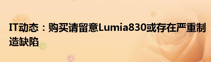 5G已經片區使用,很多小伙伴對通信這塊還不熟系!越來越多的人開始對IT、5G信息方面產生興趣,近來購買請留意Lumia830或存在嚴重制造缺陷的話題也是引起了很多人的關注,那么既然現在大家都想要知道購買請留意Lumia830或存在嚴重制造缺陷,小編今天就來給大家針對購買請留意Lumia830或存在嚴重制造缺陷做個詳細介紹。