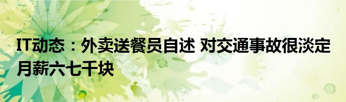 5G已經片區使用,很多小伙伴對通信這塊還不熟系!越來越多的人開始對IT、5G信息方面產生興趣,近來外賣送餐員自述 對交通事故很淡定 月薪六七千塊的話題也是引起了很多人的關注,那么既然現在大家都想要知道外賣送餐員自述 對交通事故很淡定 月薪六七千塊,小編今天就來給大家針對外賣送餐員自述 對交通事故很淡定 月薪六七千塊做個詳細介紹。